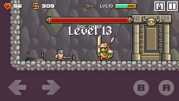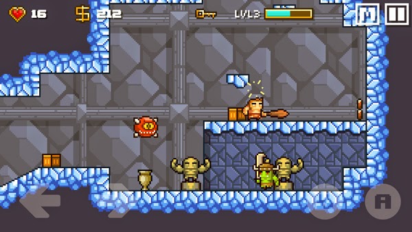 En cuanto a la jugabilidad de Devious Dungeon, estamos ante un título que mezcla las plataformas con el rol y el hack’n slashEstamos hablando de un juego para dispositivos móviles, por lo que tendremos un sistema de botones fijos, pero aún así, el control esta genial, el personaje responde muy bien y no tendremos ningún problema en este sentido.